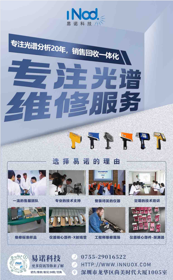 易諾科技深耕光譜行業(yè)20年,銷售維修一體化,擁有專業(yè)的維修技術(shù)人員和貼心的服務(wù)宗旨。專業(yè)解決處理死機(jī)、黑屏、零件更換、屏幕碎裂、系統(tǒng)升級(jí)等,讓儀器完好運(yùn)轉(zhuǎn),為國內(nèi)廣大擁有手持光譜儀群體提供長期光譜儀維修服務(wù),多年來深得客戶的好評(píng)!我司配件配備充足、交貨迅速、質(zhì)量優(yōu)越,外地客戶維修光譜儀可通過物流郵寄儀器到公司,性價(jià)比高!